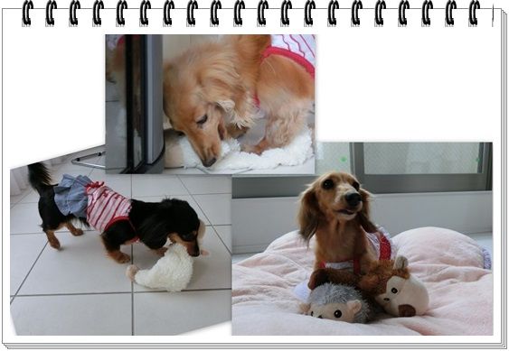 パパがサザエを食べる様子を見て、不思議顔のワンズ。