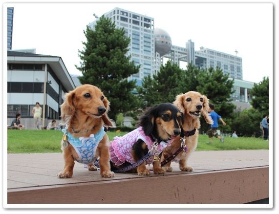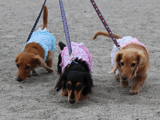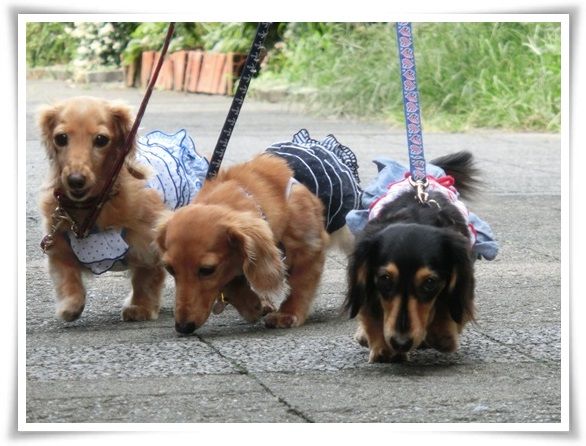 ダックスさんは短足なので、道路が濡れているとお腹から胸がビショビショになってしまいま ...