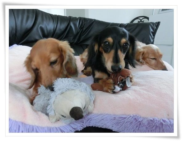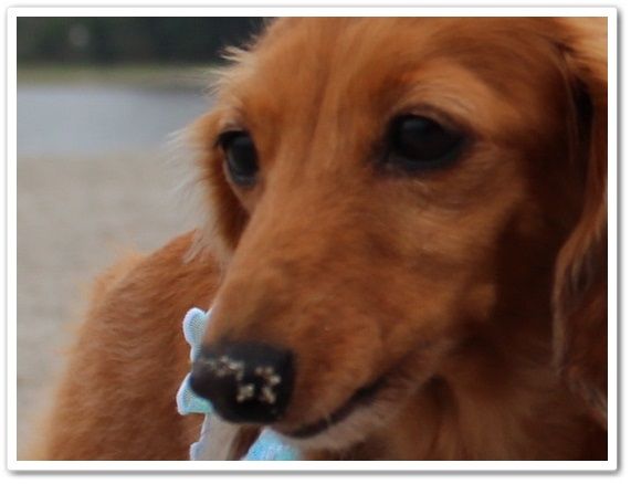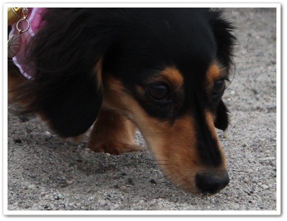 ダックスさんは短足なので、道路が濡れているとお腹から胸がビショビショになってしまいます。