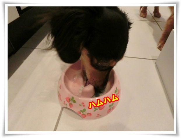 マノンのお顔を拭く手間は省けたけれど、お行儀悪いわ。