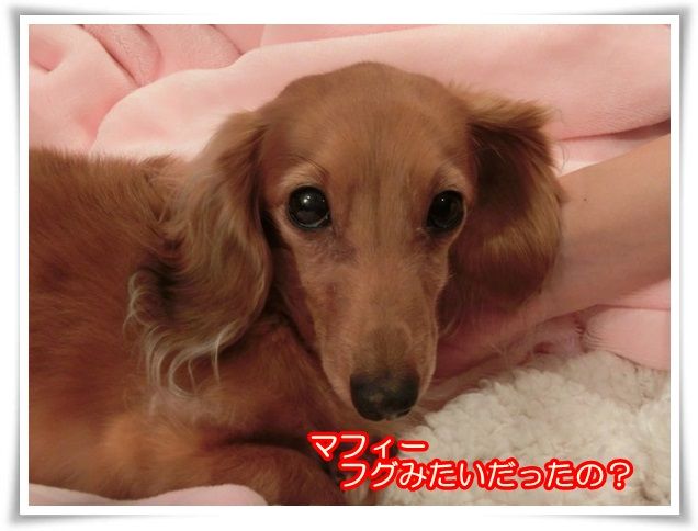 マフィー、漫画みたいにホッペを膨らましていて「ふぐ」みたいだったのよ。