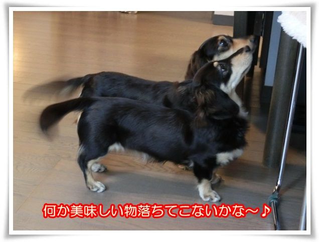 家に戻ると、早々にキッチンに集合してヨーグルト待ちのワンズ。
