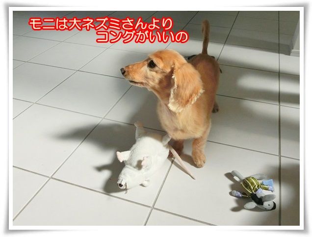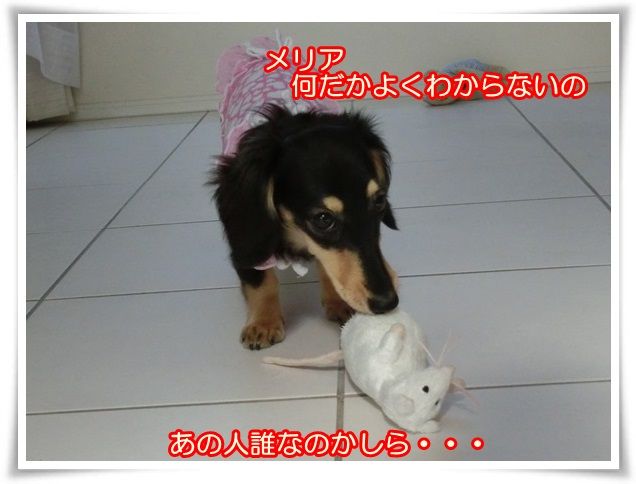 メリアはおみやげにもらったネズミさんで遊んでいます。