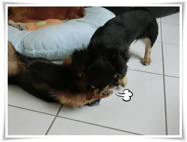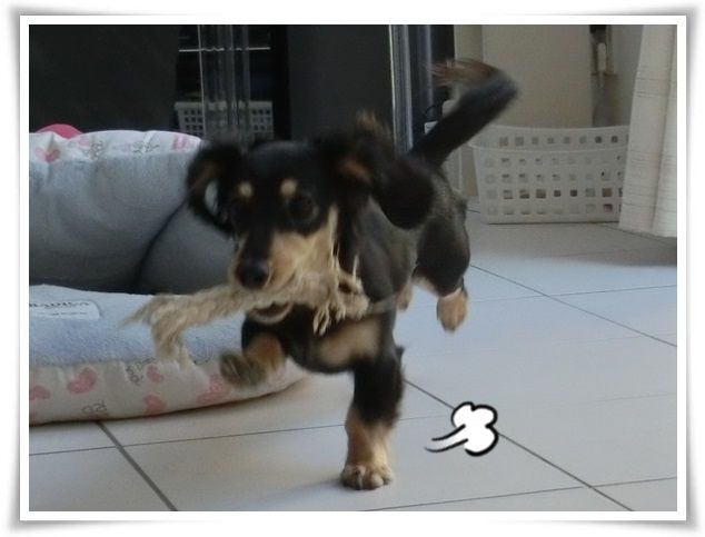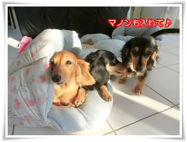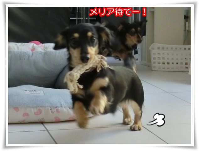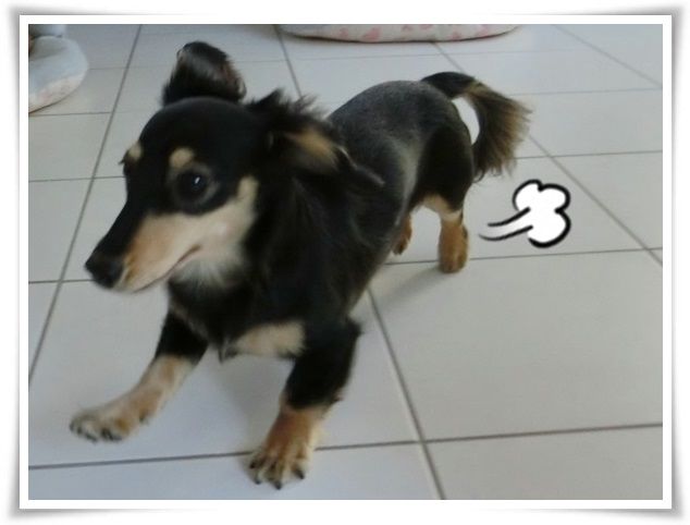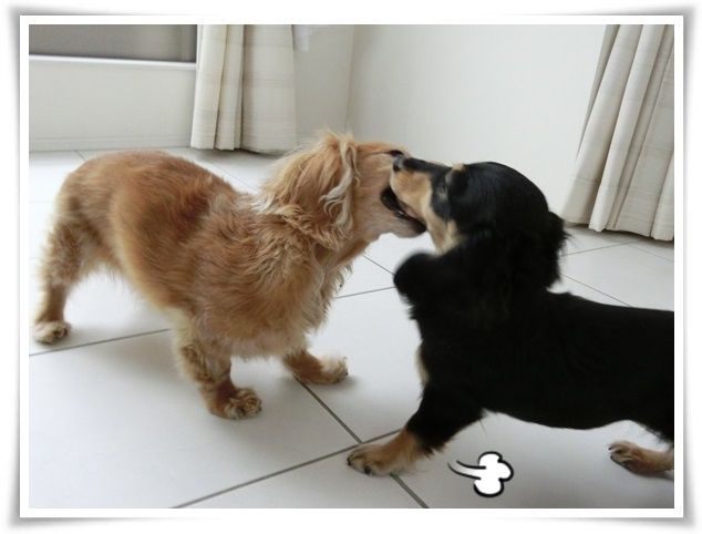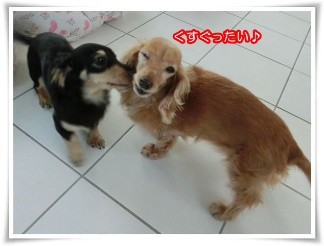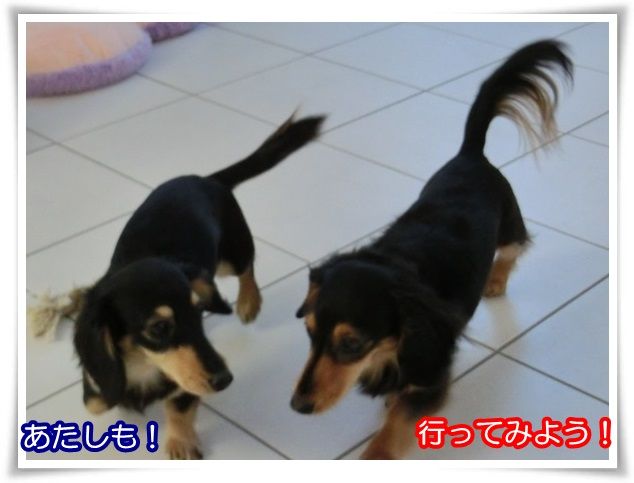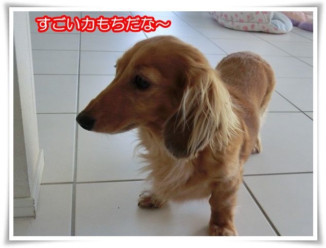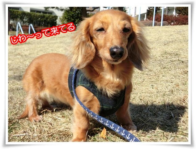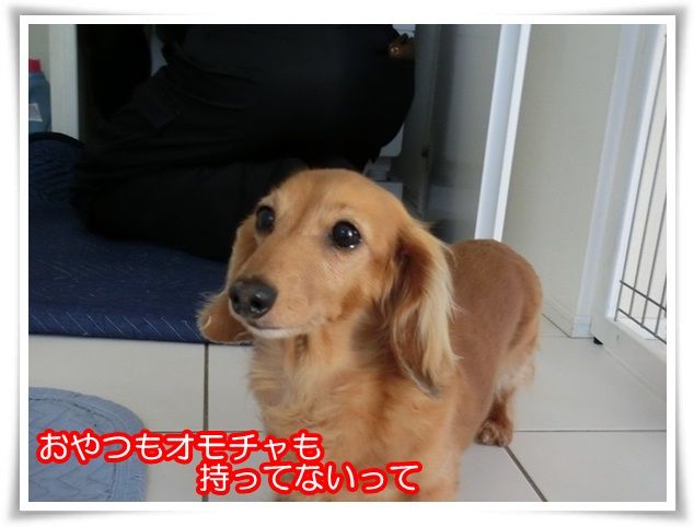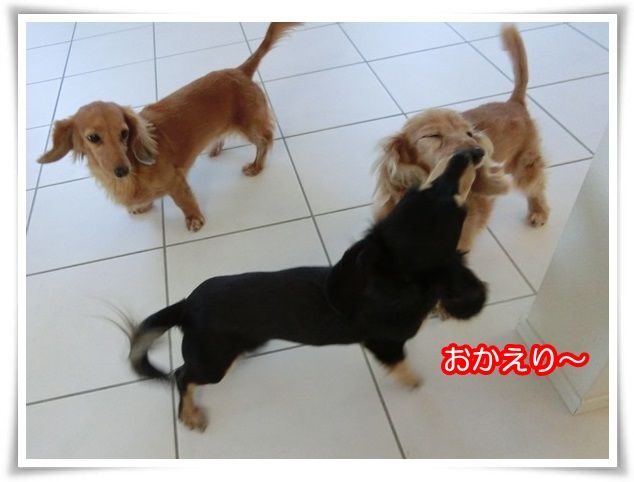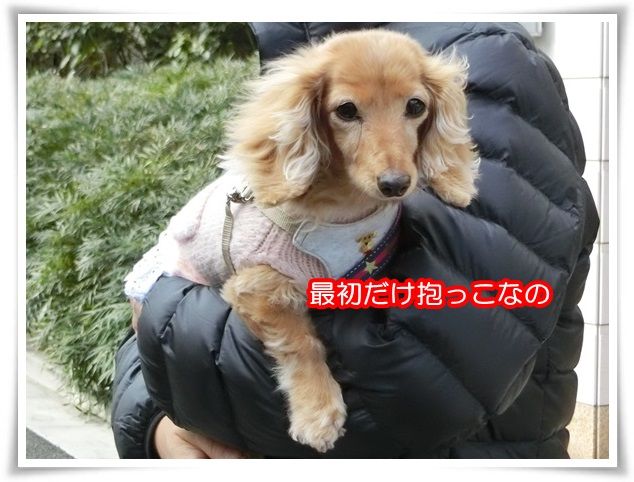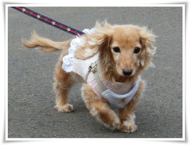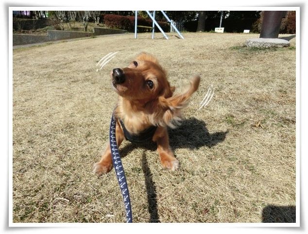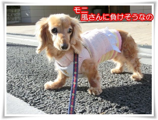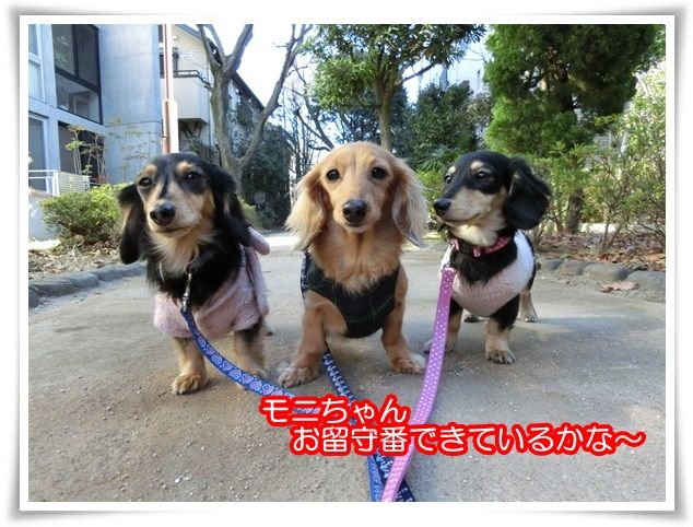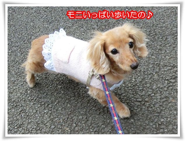 家を出た途端から甘えん坊のモニ。