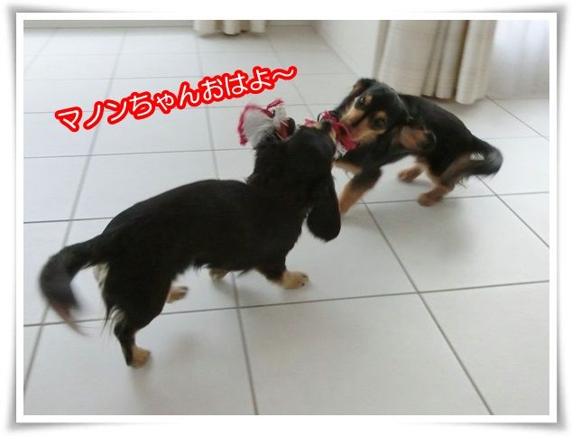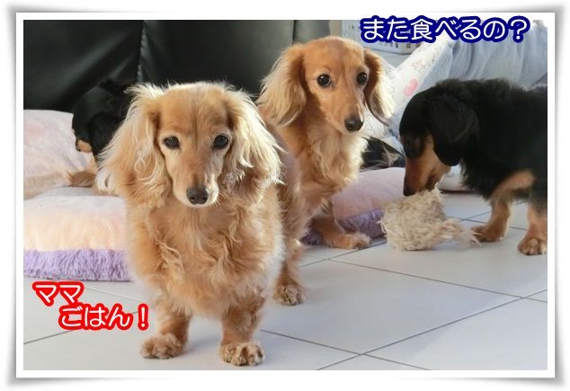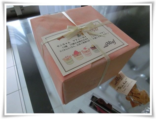 午後、モニ&マフィーのお誕生日ケーキが届きました。