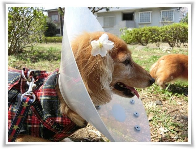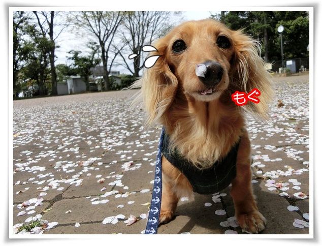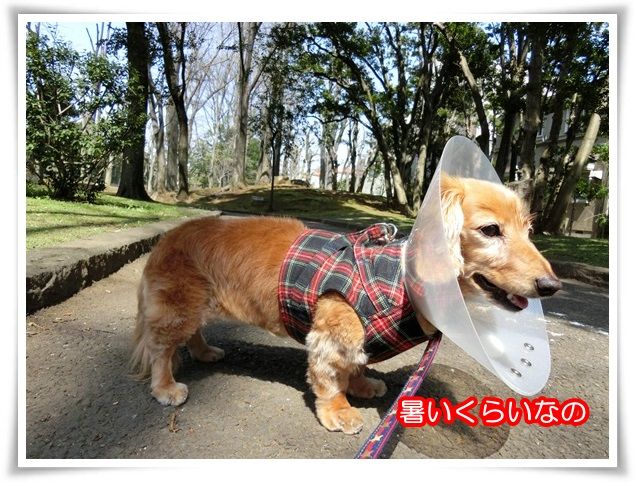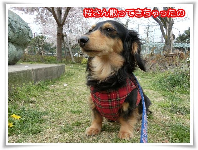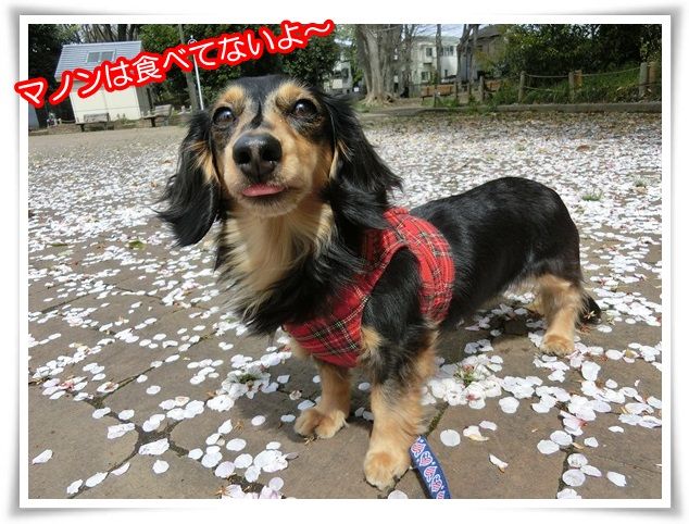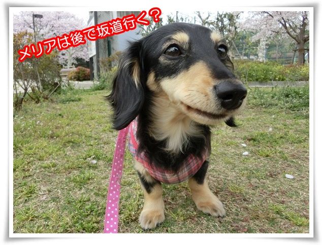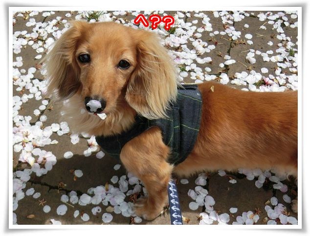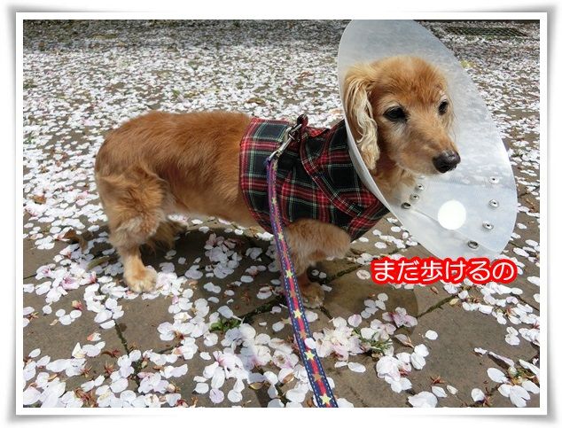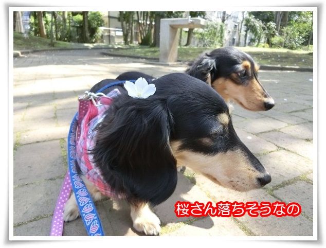桜の木を迂回しながらのお散歩、大変なのよ~