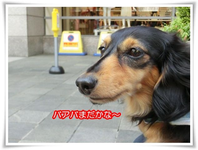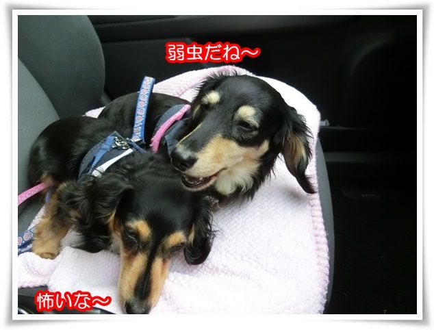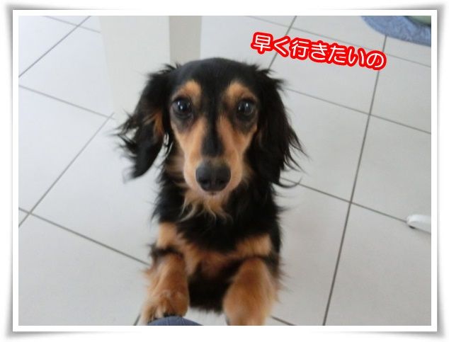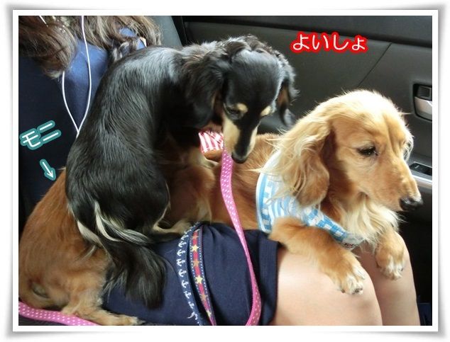 駐車場から病院に行く途中、モニが立ち止まりました。