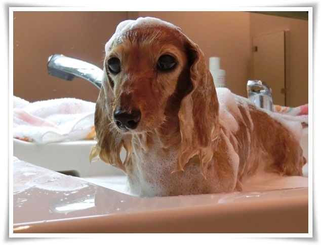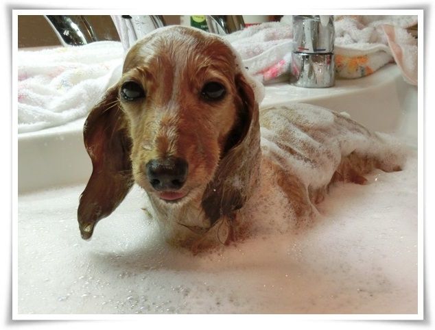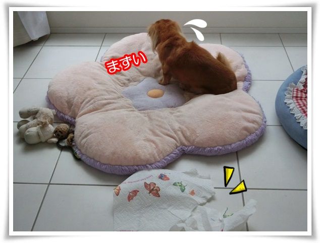 モニ、朝は普通の便をしていたのに、ここでユルユルの便。