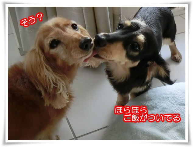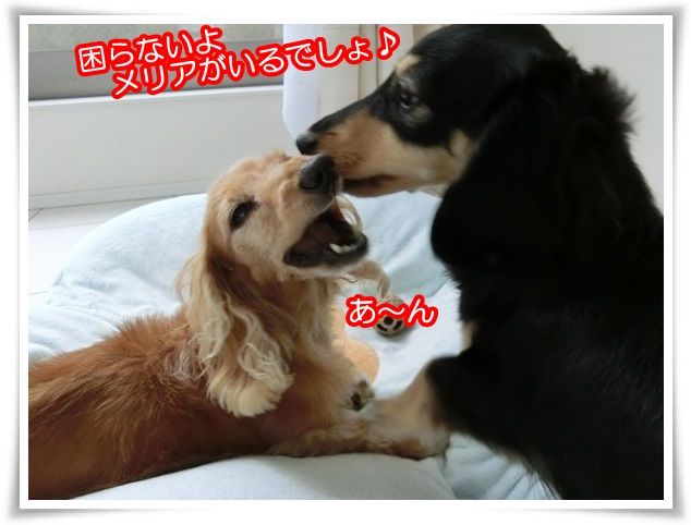メリアがモニのお口に顔を突っ込みました。