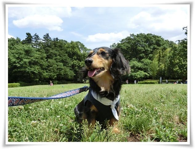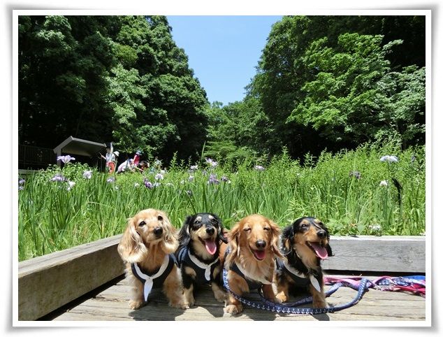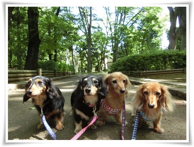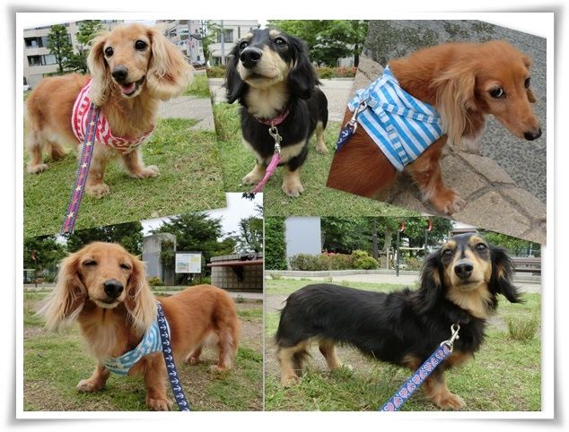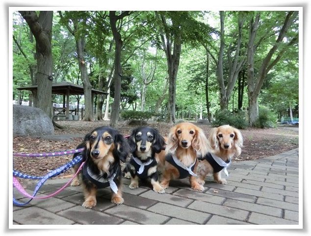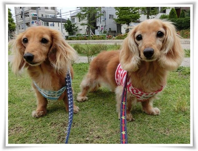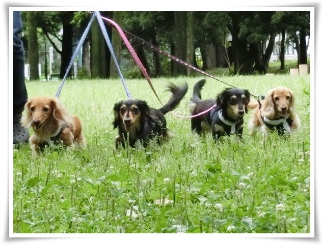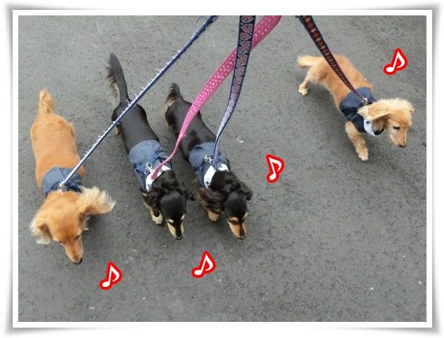 空はどんよりでしたが、ワンズは晴々と歩いていました。