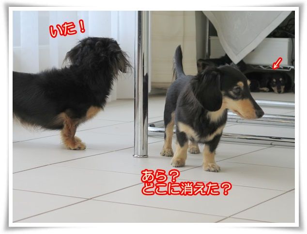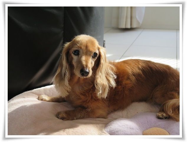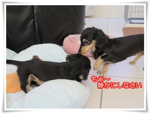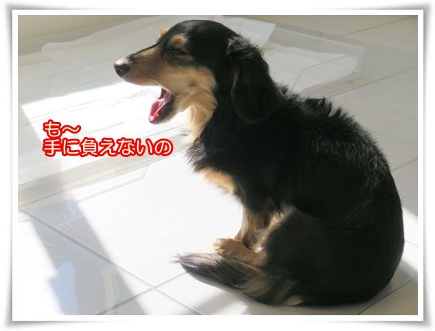 マノン、床でいじけています。
