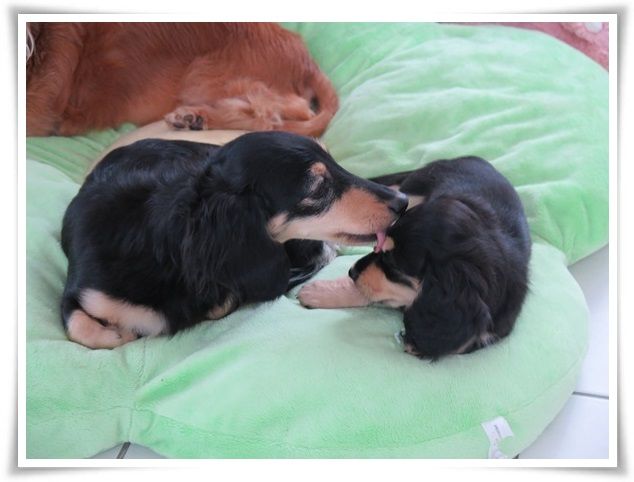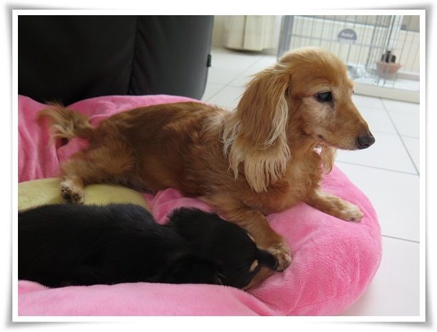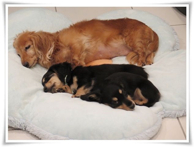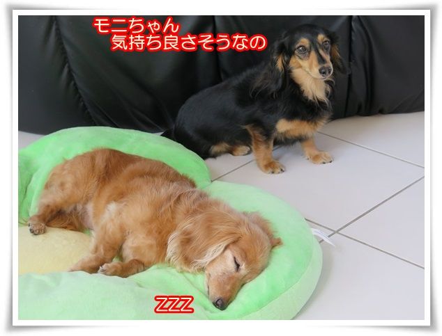 モニ、ミルカが寄り添って寝ることを許してくれるようになりました。