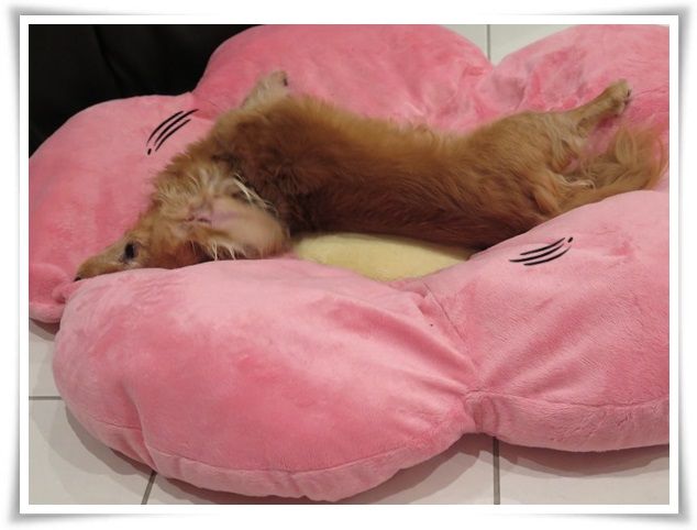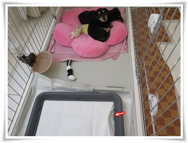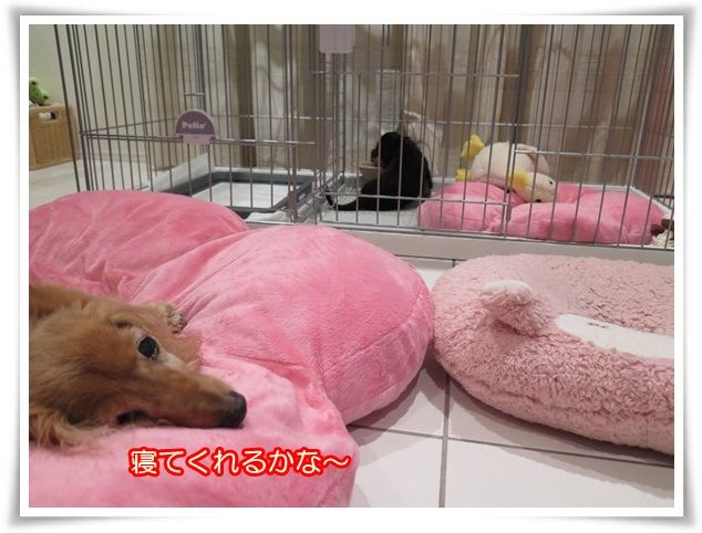 ケージの目の前にみんなが寝るお布団も置きました。