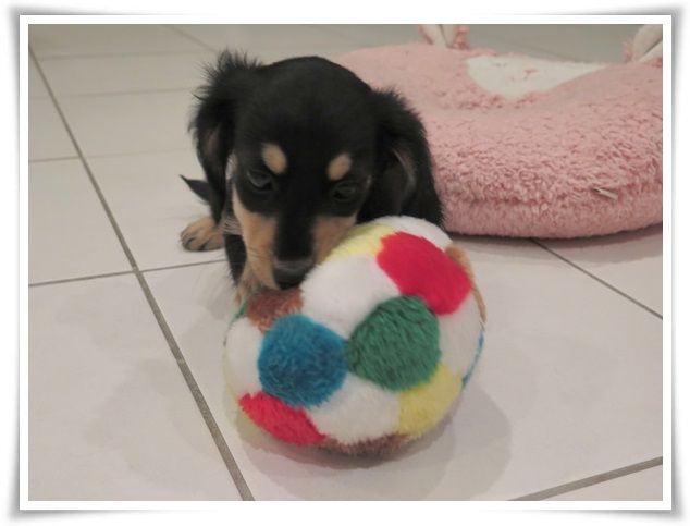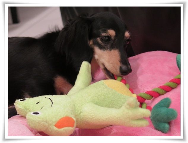 オモチャ遊びに夢中になっているミルカ。