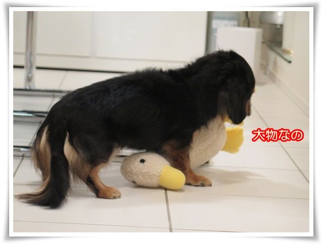 マノンは大きなアヒルさんと格闘中。