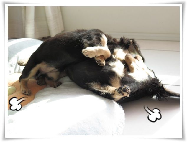 わたしが部屋を行ったり来たりするたびに「期待の視線」を浴びせるワンズ。