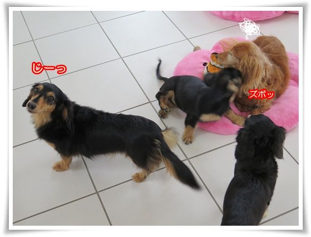 オモチャで遊び始めてやっと落ち着きました。