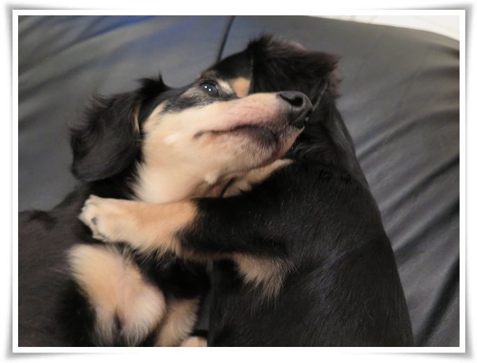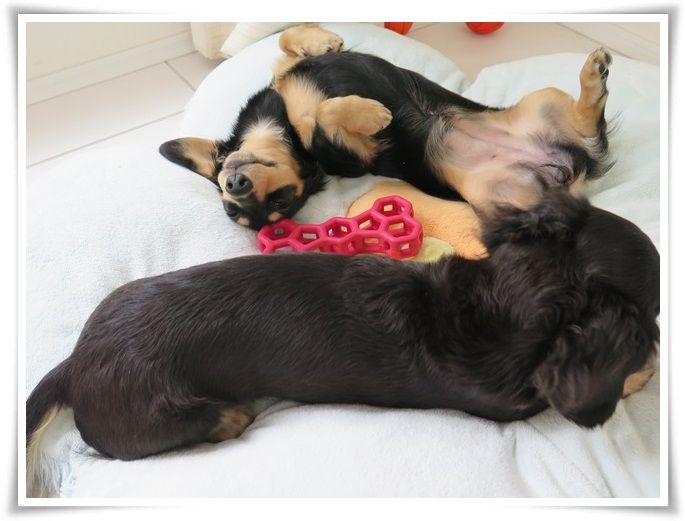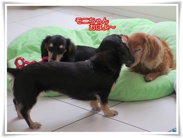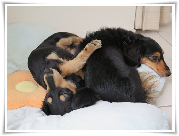 夜はほぼ9割がた、ミルカがモニに寄り添って寝ています。