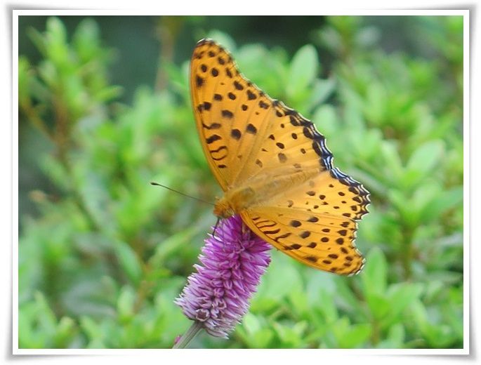 ケイトウの蜜を吸うヒョウモンチョウを見つけました。