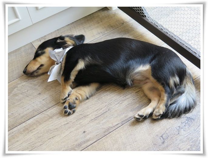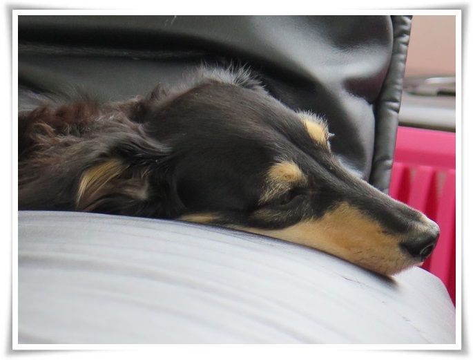 (マノンはクレートで爆睡中)