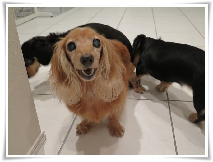 ワンズはお肉が焼ける前にアリちゃんママのおやつタイム。