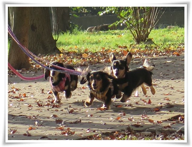 ブラッキーズは、今日はパパとお散歩。
