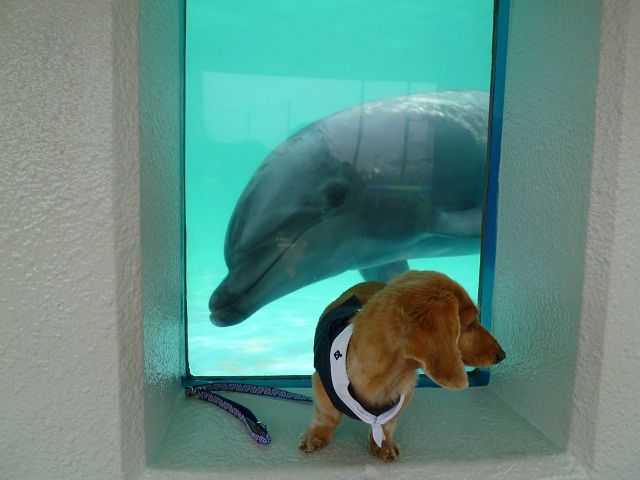 ここのイルカさんは、知る人ぞ知るワンコ好き♪