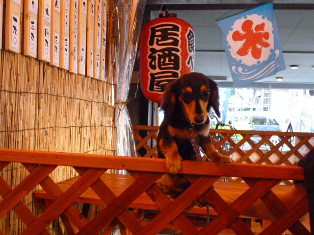 テラス席が設けてあり、「居酒屋」と書いた提灯がぶら下がっていて、