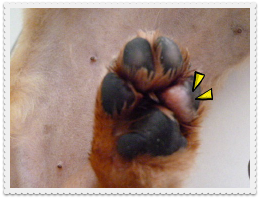 肉球が少しはがれて、赤くなってしまっています。