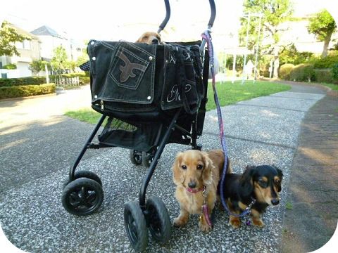 お散歩に行くと、モニとマフィーの後ろに隠れて、とてもビビリだったので、