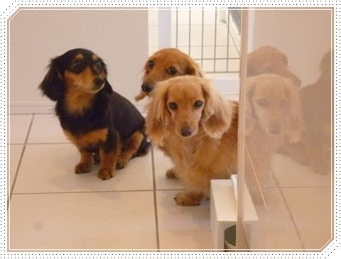 メルも、キッチンの扉に顔を写して覗き込んでいる写真が残っています(o^^o)ふふっ♪