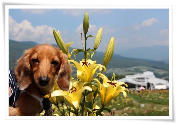 入口の注意書きに、「犬をゆりの花の間に入れないでください」とありました。