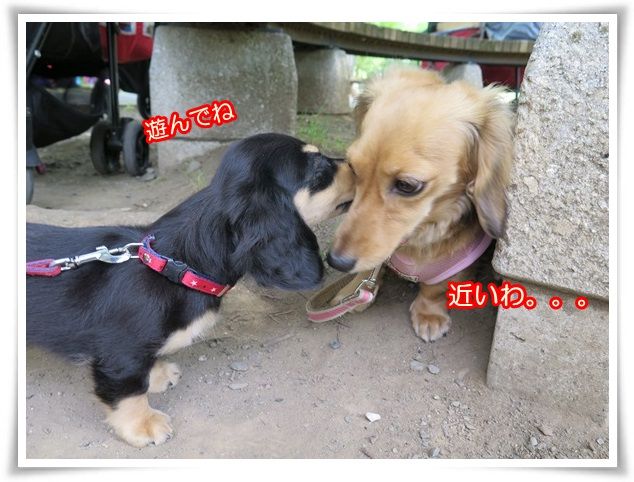そんな中で先輩ワンコに積極的に挨拶できたようで、
