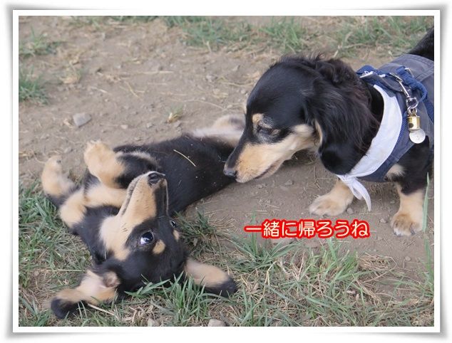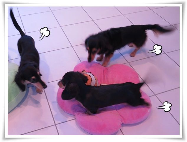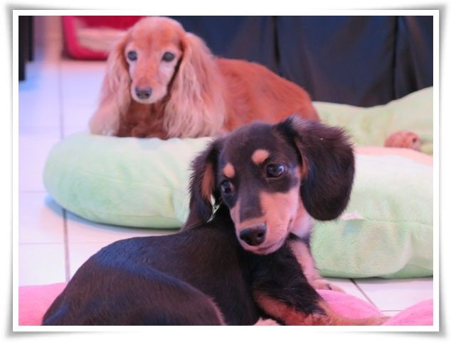 ミニチュアダックスのロッキー君6ヵ月ですが、もうマノンよりも重いです。