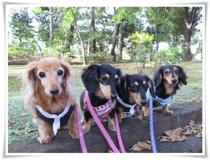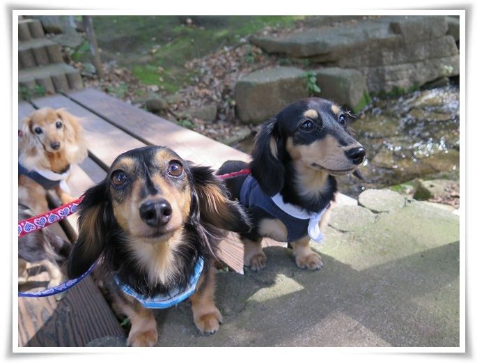 気持ちの良いお天気でルンルンなお散歩だね♪モニちゃんは大好きな樹木園でイキイキ(*^ー^)ノ♪マノンちゃん…マフィーちゃん小川で泳いでなかった?マフィーちゃん…今度はお鼻に葉っぱ期待してるからね~(笑)