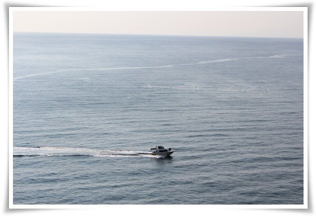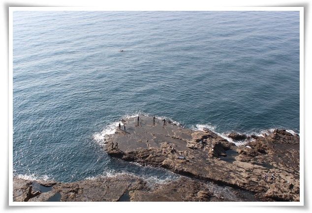 真下を見ると、岩場で釣りをしている人達が見えました。
