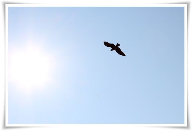 空を見上げると、トンビが風に乗って気持ち良さそうに遊んでいました。