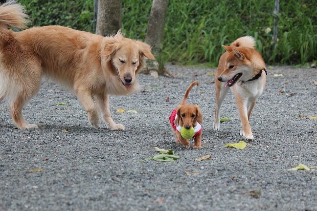それまでのんびりボール遊びを楽しんでいたゴールデンさん、大忙しになりました。