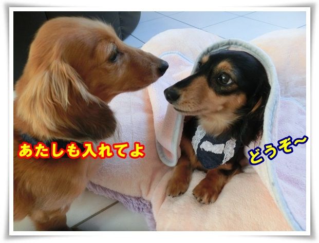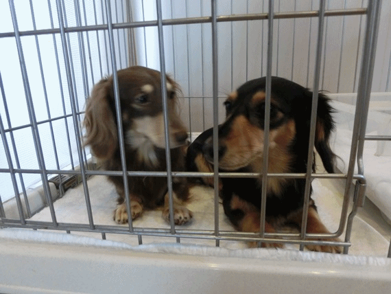 思いっきり走り回ることもできず、一緒におとなしく時期を待っているお2人さん。